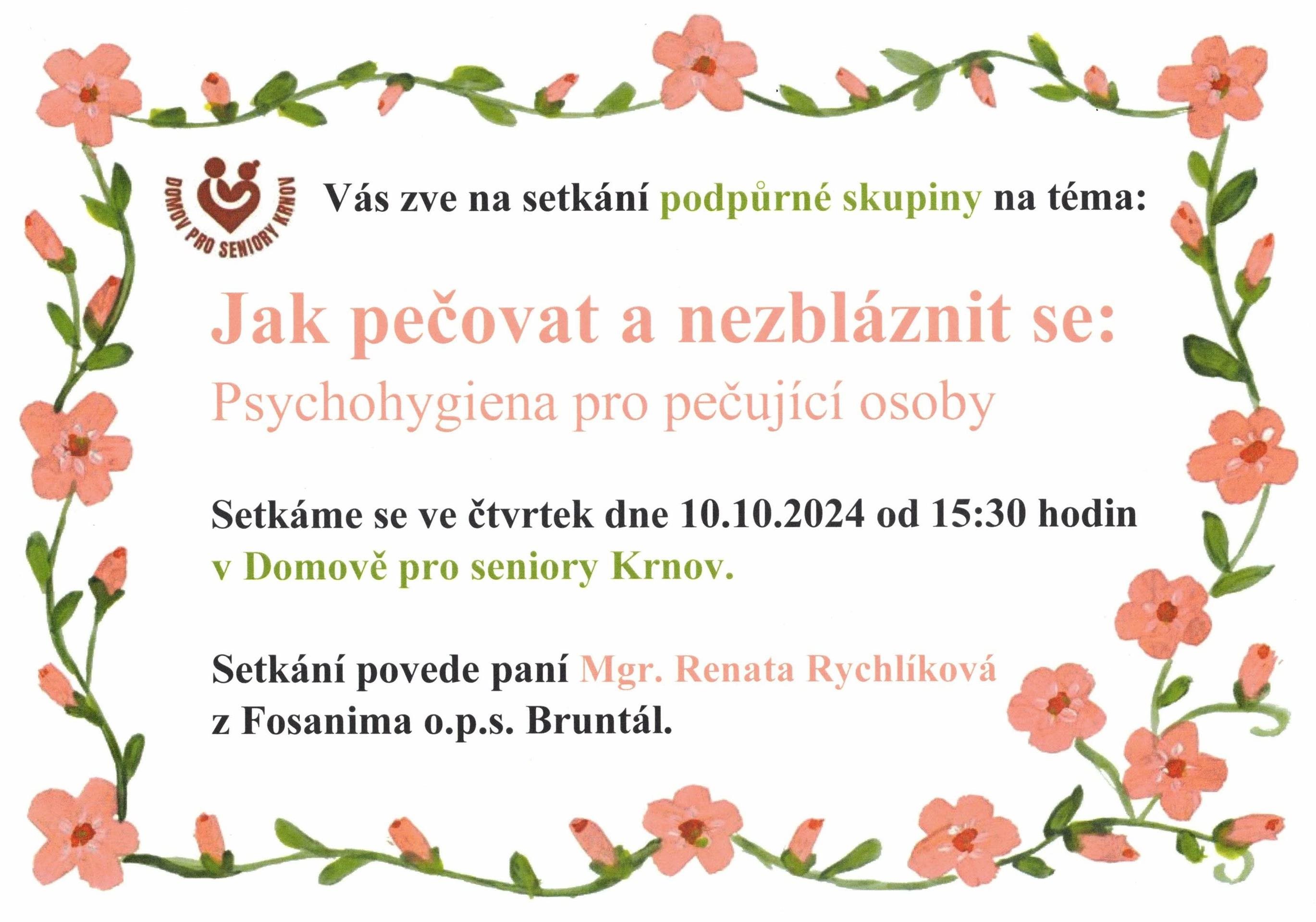 Podpůrná skupina "Jak pečovat a nezbláznit se" 10.10. 2024