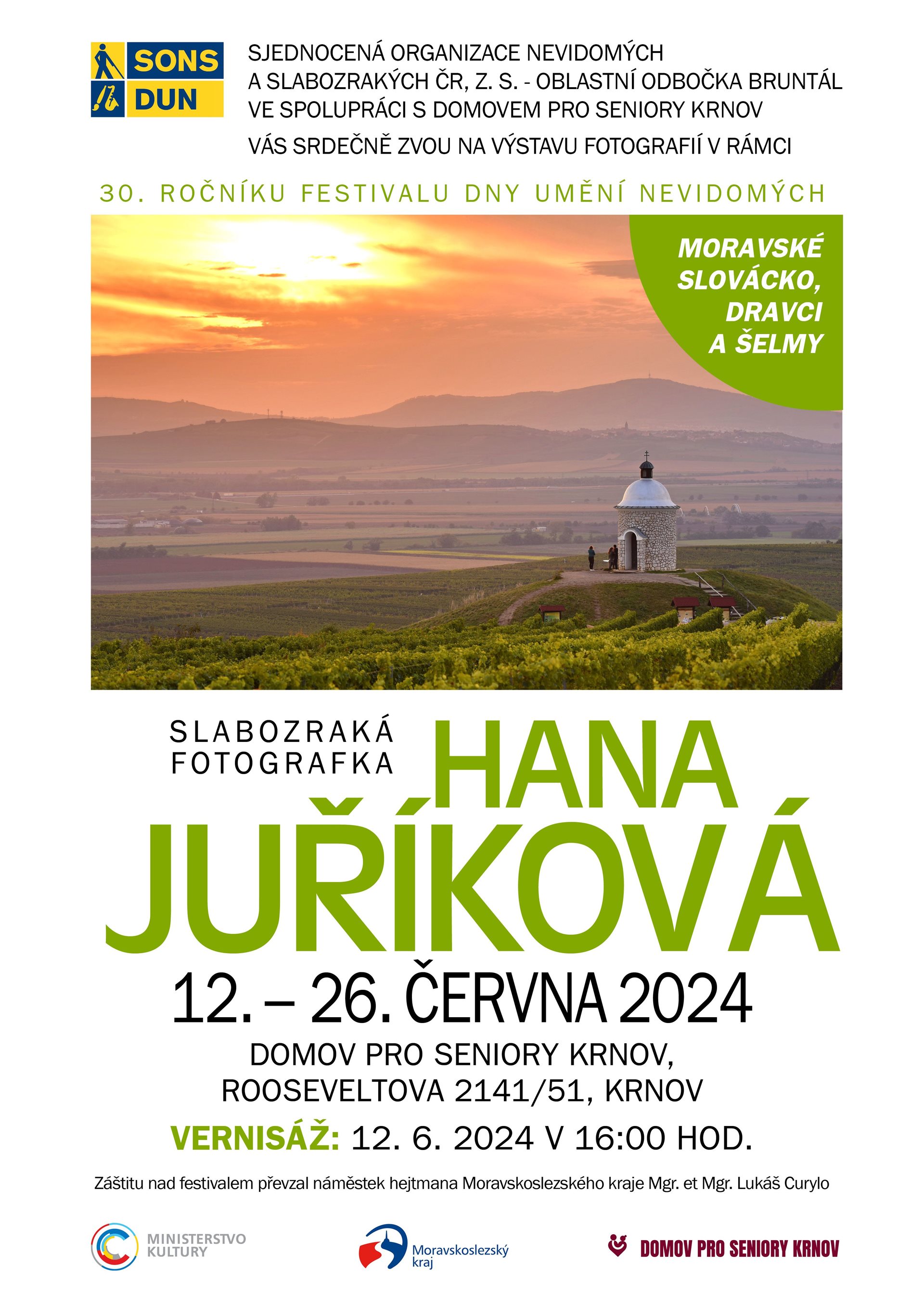 Přijměte pozvání na vernisáž fotografií Hany Juříkové, fotografky se zrakovým znevýhodněním. Vernisáž i následná výstava fotografií proběhne v nově zrekonstruovaných prostorách vstupní haly Domova. 12. června 2024 v 16:00.