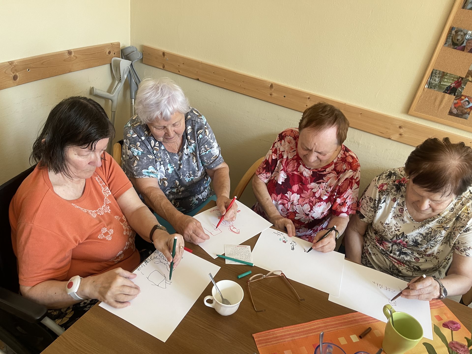 V dopoledním klubu si proto klienti v rámci grafomotorického tréninku vyzkoušeli některé aktivity jen svou levou rukou. Schválně zkoušeli jste se někdy třeba levou jen podepsat?