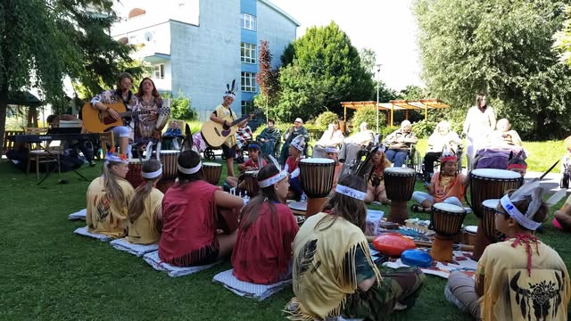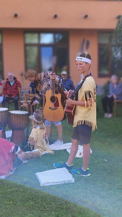 Když se v našem domově pro seniory řekne „muzicírování“, mnozí už ví, že se blíží příjemný den plný hudby, radosti a společného zpěvu. Tentokrát to ale nebylo jen tak obyčejné setkání – paní Marie Veliká přišla i s celou indiánskou družinou dětí z příměstského tábora, a společně připravili hudební zážitek, na který se jen tak nezapomene!