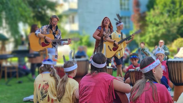 Pod širým nebem, přímo před naším Domovem se rozezněly tóny písní, bubnů a veselého smíchu. Náčelnice Marie, jak si pro tuto příležitost říkala, dorazila se svou pravou rukou Markétkou a levou rukou Zuzkou - indiánskými průvodkyněmi, které spolu s dětmi rozproudily atmosféru jako prérijní vítr.
