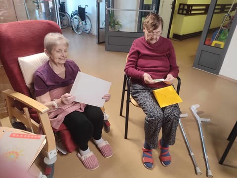 Děti si pro nás připravily nejen přáníčka a obrázky k Velikonocům, také vyrobily i mnoho povedených výrobků, kterými nás obdarovali. Společně jsme si také zazpívali několik písniček. Bylo velmi příjemné vidět štěstí z přítomnosti dětí v očích našich klientů, protože udělat radost se dá někdy i jen maličkostí. Děkujeme moc p. učitelkám za tuto milou návštěvu.