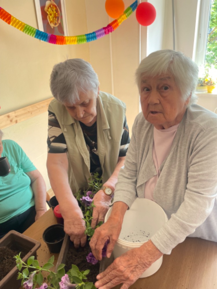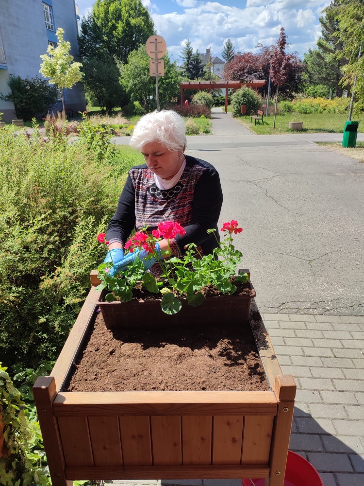 Společnými silami jsme si osadili truhlíky zdobící terasy našich oddělení. Až půjdete kolem, nezapomeňte se podívat, jak se nám to povedlo.